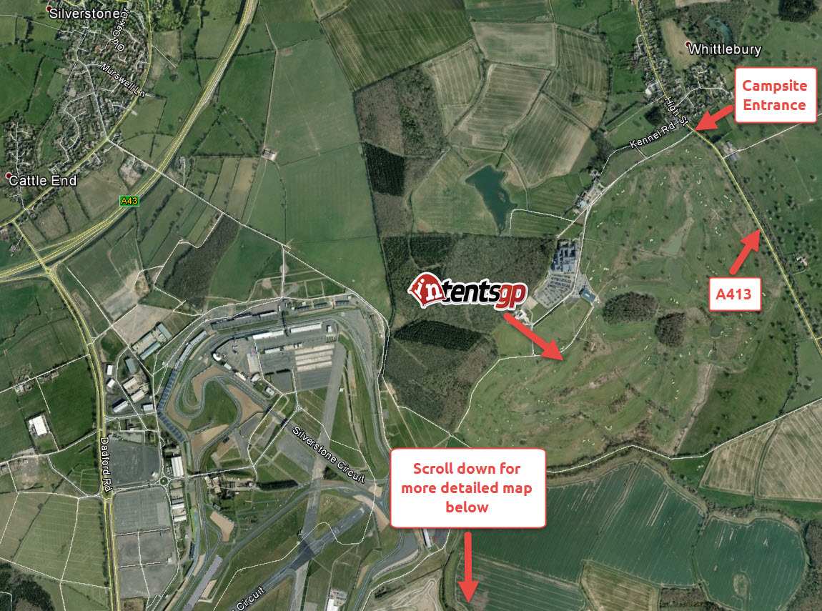 Detailed map of Silverstone & Whittlebury campsite showing intentsGP's location and facilities